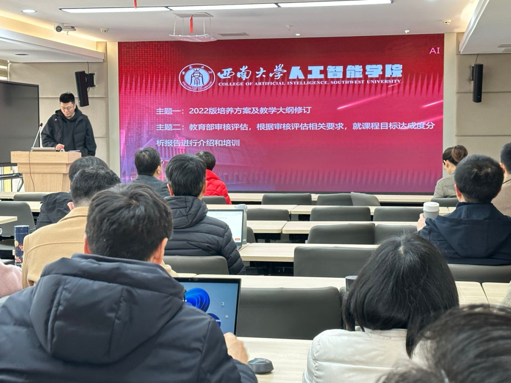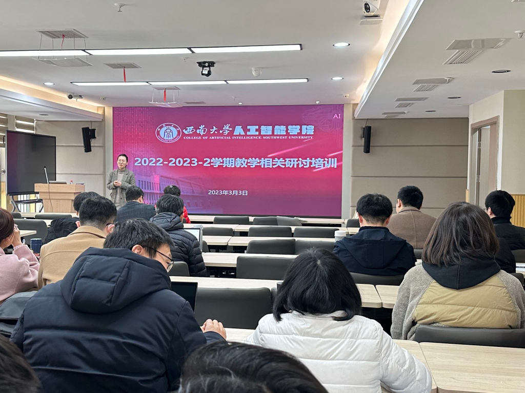 为深入学习贯彻党的二十大精神,全面落实立德树人根本任务,按照《普通高等学校本科教育教学审核评估实施方案(2021—2025年)》(教督〔2021〕1号)、《西南大学本科教育教学审核评估工作方案》(西校〔2021〕316号)等文件要求,做好本科教育教学审核评估自评自建工作,不断提高人才培养质量,365上市公司(英国)集团于2023年3月3日举行2022版培养方案及教学大纲教学研讨和课程目标达成度分析报告培训,学院全体教师参加教学研讨和相关培训。