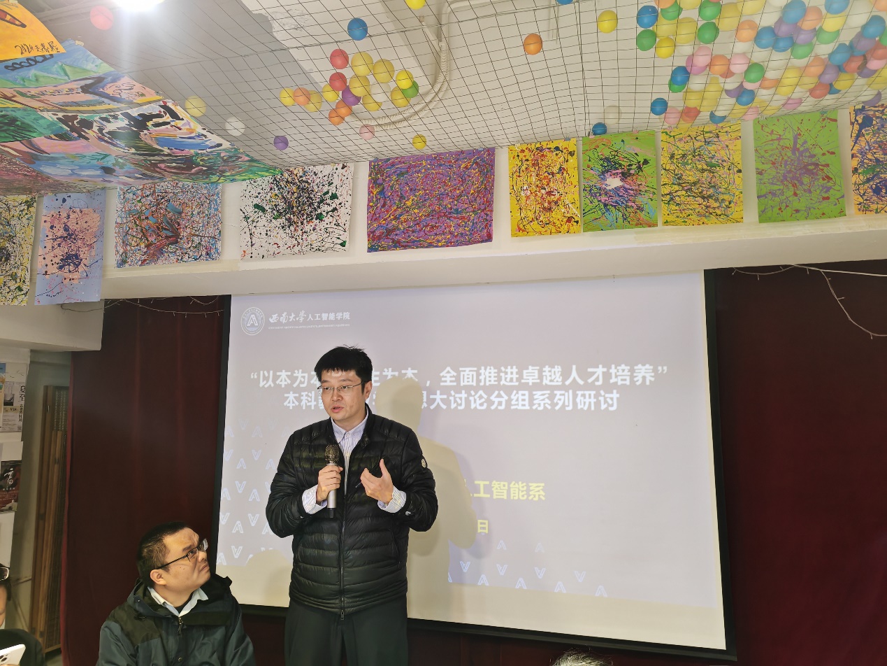 为深入贯彻习近平新时代中国特色社会主义思想,全面落实党的二十大精神、二十届三中全会精神及全国教育大会精神,深化教育科技人才体制机制改革,推动本科人才培养高质量发展,根据《西南大学“以本为本、以生为本,全面推进卓越人才培养”本科教育教学思想大讨论工作方案》(西校〔2024〕173号)及学院实施方案,人工智能系于11月29日下午举办了本科教育教学思想大讨论系列专题研讨活动。学院副院长陈枫,人工智能系全体教师,以及智科科学与技术系、实验中心等相关教师受邀参加了本次研讨。