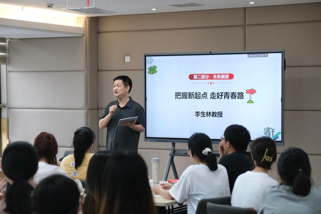 活动邀请了学院李生林教授、潘东波副教授作为嘉宾,为同学们作授课交流。李生林教授以“把握新起点 走好青春路”为题,围绕“价值”“改变”“闭环”“人生”等关键词,以讲故事的方式,生动地分享了“如何走好研究生毕业后的第一步”。潘东波副教授以“漫谈人工智能”为题,以影视中的人工智能切入,深入浅出地同大家交流了人工智能的相关概念、现状与发展趋势,鼓励同学们立足专业探索专业、以智慧贡献青春力量。