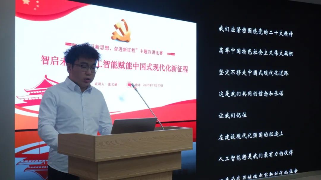 为深入学习贯彻习近平新时代中国特色社会主义思想,深化学院本科生 “党的二十大精神人人讲”AI课间微宣讲活动成果,助力新工科学生政治素养提升与综合素质锻炼,12月15日下午,学院启动首期【AI学生大讲堂】,在801会议室举办“学习新思想,奋进新征程”主题宣讲比赛。学院党委书记夏俊,党委副书记、纪委书记张维薇出席活动。本科生各班级学生代表、党校第二期入党积极分子培训班学员代表参加。