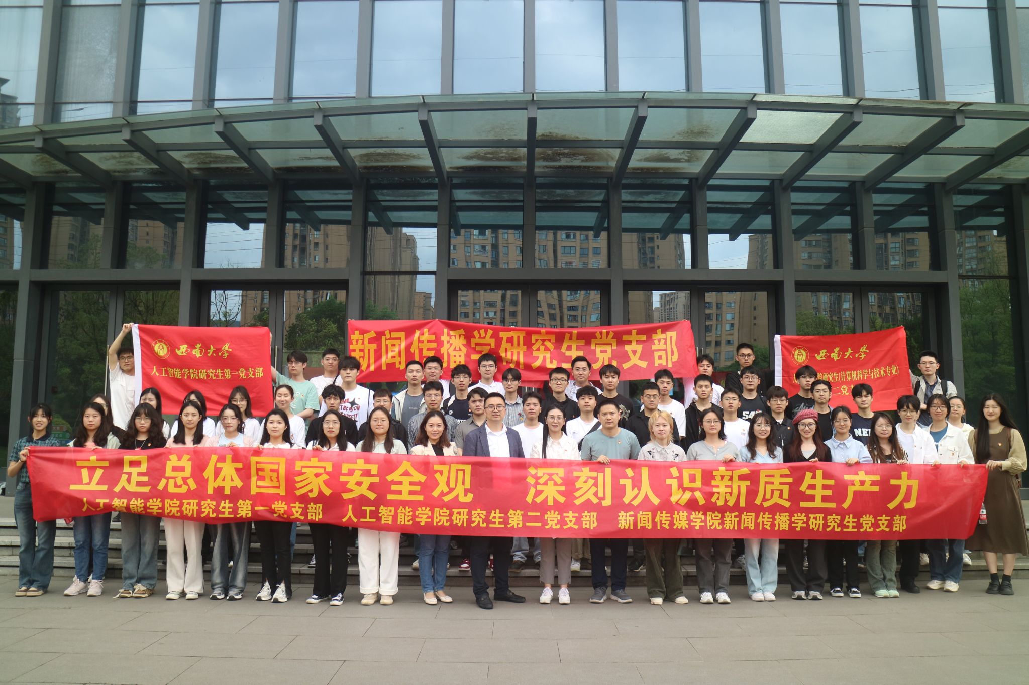 研究生第一党支部、研究生第二党支部携手新闻传媒学院新闻传播学研究生党支部,走进重庆高新技术产业研究院开展研学,实地参观智能网联新能源汽车、智能装备等领域原创科技项目成果,详细了解研究院聚焦制造强国建设、孵化培育专精特新企业的探索与成绩,调研现代企业对人才的需求,围绕今年全国两会热词“新质生产力”、“人工智能+”等,通过微党课分享和热点话题讨论,立足学科专业进行支部间深入交流研讨,引领党员成长导向、拓宽发展视野、增进学术交流、强化责任担当。