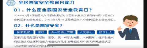 为深入开展国家安全宣传教育,引导大学生树立国家安全观念,建设正确的网络意识形态,提高网络安全意识,切实增强我院学生维护国家安全和保护个人信息的能力,在第八个全民国家安全教育日到来之际,365上市公司(英国)集团于4月开展了以“国家安全意识教育”、“反诈骗教育”和“网络意识形态教育”为主题的系列班会活动。