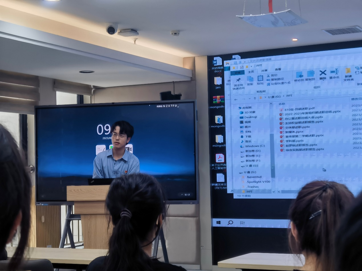 干事代表宫雷皓表示过去一年在办公室这一温馨、有干劲的部门工作,切切实实的锻炼了其自身的沟通协作能力、活动策划能力与随机应变能力。同时也认识到,作为团委学生会的一员,应当保持真诚服务同学的心、良好的工作素质以及扎实的工作作风。他表示,在未来不论是继续坚守岗位还是投身于学习中,本学年的工作都将是大家个人成长中绚烂夺目的一页。