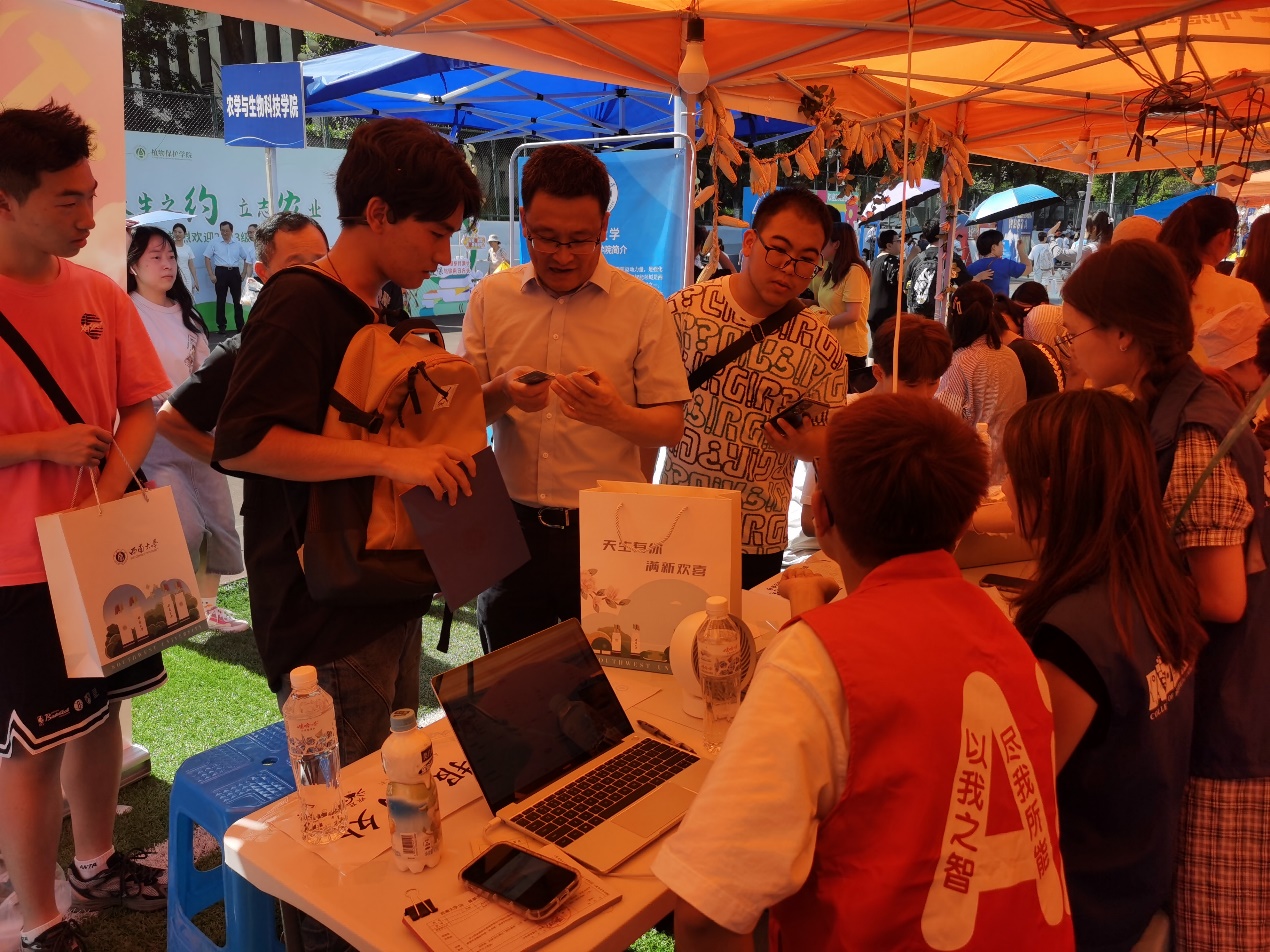 在迎新过程中,学院党委书记夏俊、院长段书凯也来到迎新报到处,表达了对新生们的热烈欢迎和深切关心。与新生们面对面交流,了解他们的需求和期望。并强调了学院对于迎新工作的高度重视,鼓励新生们积极融入学校大家庭,追求卓越。学院领导的亲临慰问无疑为新生们带来了巨大的鼓舞,也展示了学院对于每一位学生的关切和承诺。期待新学年的到来,共同创造更美好的未来!