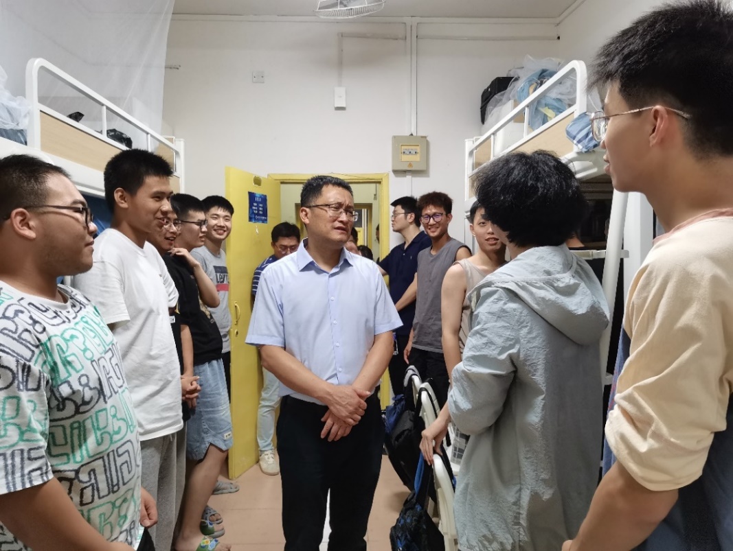 9月10日晚上19时,党委书记夏俊,党委副书记张维薇、学院副院长胡小方、团委书记张放、学院行政办公室主任王嘉、2023级本科生班主任毓培、舒雷、周跃、胡利梅、张引航以及研究生辅导员夏铭、本科生辅导员孙一博、汪易玲走进2023级新生宿舍,为同学们送去关心与祝福。