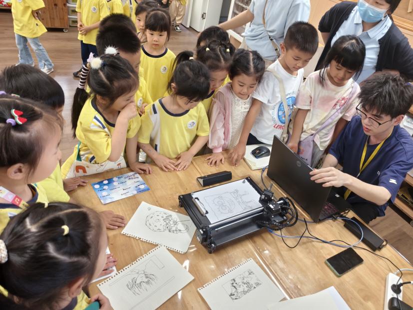 5月30日上午,科普社的成员们早早地来到了幼儿园,精心布置着“AI派对”展示区。科普故事厅里,志愿者们用生动有趣的语言讲述着人工智能的奇妙故事,从古老的神话传说中的人工智能雏形,到现代生活中无处不在的智能应用,小朋友们听得津津有味,不时发出阵阵惊叹。