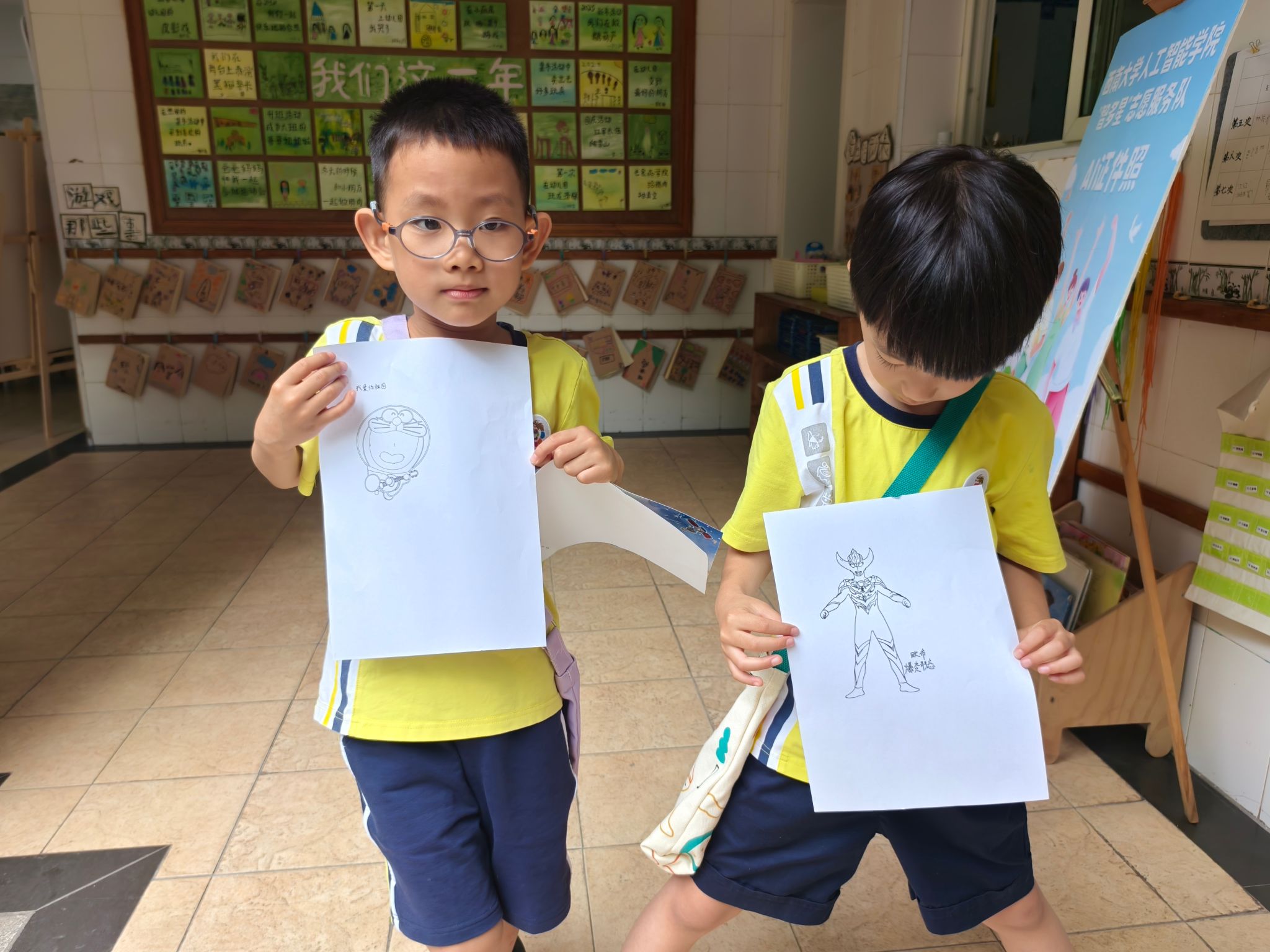 画画机器人区更是吸引了众多小朋友的目光,只见机器人在纸上灵活地挥舞着画笔,不一会儿就绘制出了一个个经典人物:奥特曼、美人鱼、艾莎公主、海绵宝宝......,小朋友们惊叹不已,纷纷围在机器人周围,好奇地观察着它的每一个动作。
