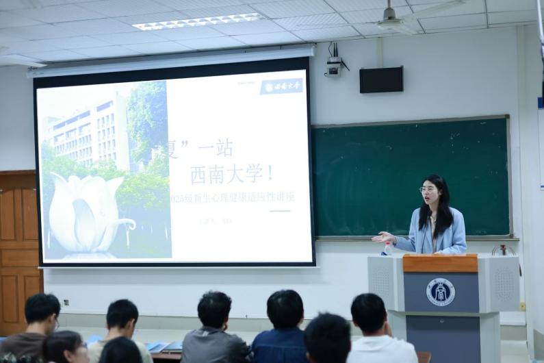同日晚上,学院汪易玲老师为新生带来心理健康教育专题讲座。讲座以“扫雷”、“你比我猜”等破冰游戏开场,有效促进了同学间的熟悉与互动。汪易玲老师从人际交往、学习规划与学校心理健康资源三个维度展开讲解。她鼓励新生主动把握机遇,大方展示自我,勇于尝试并不怕试错,通过积极参与活动与真诚互助融入集体。在学习方面,她引导同学们认识到主动规划的重要性。汪老师还详细介绍了学校的心理健康资源与相关课程,帮助同学们学习如何洞察内心、理解自我,从而更好地与他人相处。最后,她祝愿所有新生能以积极的面貌享受大学生活,迎接未来的每一天。