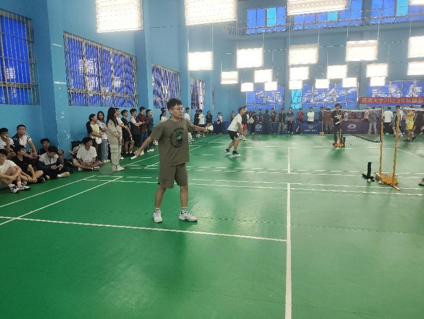 2023年10月21日至22日,西南大学羽毛球校联赛于四运羽毛球馆火热举行。我院经过激烈的院选拔赛后,派出梅钊宁等14人参加本次羽毛球校赛。他们在赛场上挥洒汗水,不言放弃,奋力拼搏,展现出AI学子积极向上,拼搏进取的精神面貌。