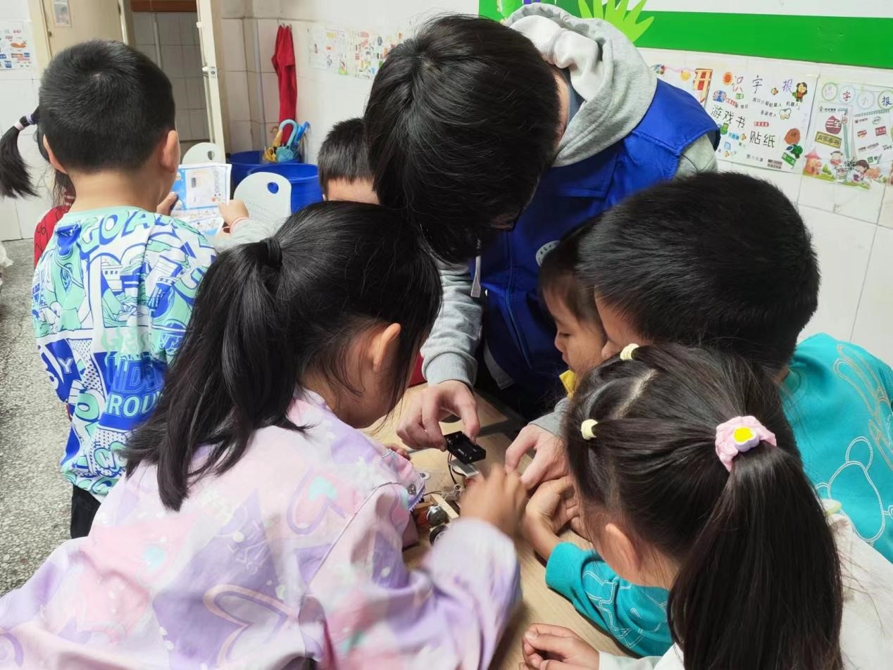 实际操作环节,在志愿者的帮助下小朋友们分小组进行声控小车的制作,大家全身心投入声控小车零件的组装,当看到亲手组装的小车成功跑动时,小朋友们脸上露出了开心的笑容,通过动手制作声控小车,小朋友们不仅学习到了科学原理,还培养团队合作精神和解决问题的能力,在小车组装中体验到创造的乐趣。