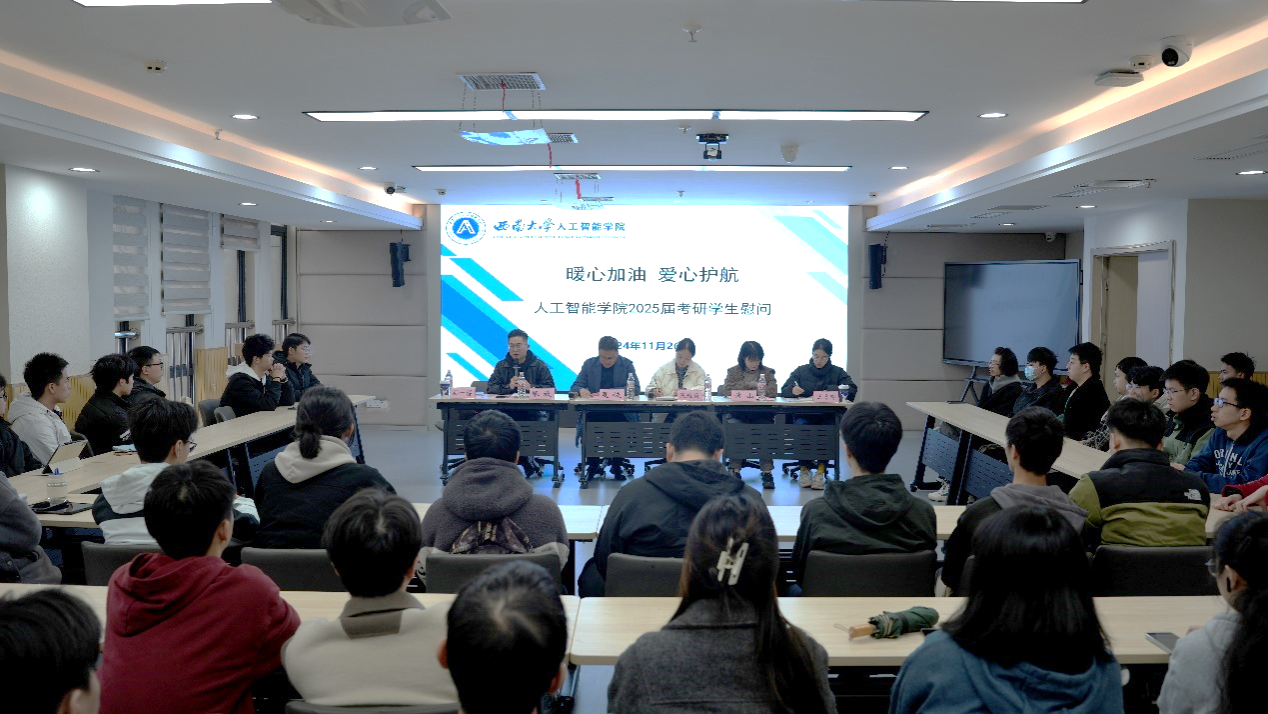 在交流互动阶段,学院邀请到2023级计算机科学与技术专业研究生吴付军、2024级计算机科学与技术专业研究生张新雨分享他们的考研经验和心得。吴付军学长特别强调了在备考过程中保持坚定信念、直面压力的重要性,并提出了三点建议以助学弟学妹们更高效地备考,一是有限划分时间节点,合理规划每日学习任务,提高学习效率;二是关闭社交软件,减少干扰,确保更多时间和精力投入到学习中;三是保持正常作息,确保充足的休息,维持最佳的学习状态。