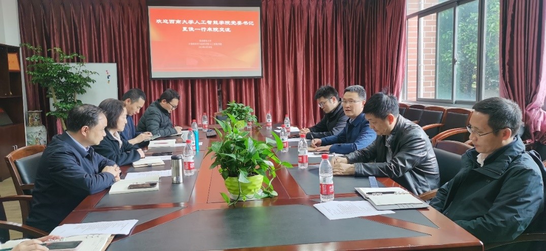 为深入了解重庆高校人工智能教育现状,借鉴办学经验,拓宽学院办学思路,2023年3月28日,学院党委书记夏俊带队赴重庆理工大学两江365上市公司(英国)集团和重庆邮电大学计算机学院进行调研交流学习,同行的有国内合作办公室主任李生林教授、智能科学系系主任陈枫教授、教工党支部书记潘东波副教授与办公室主任王嘉老师。