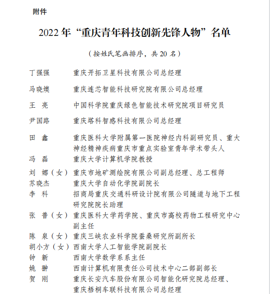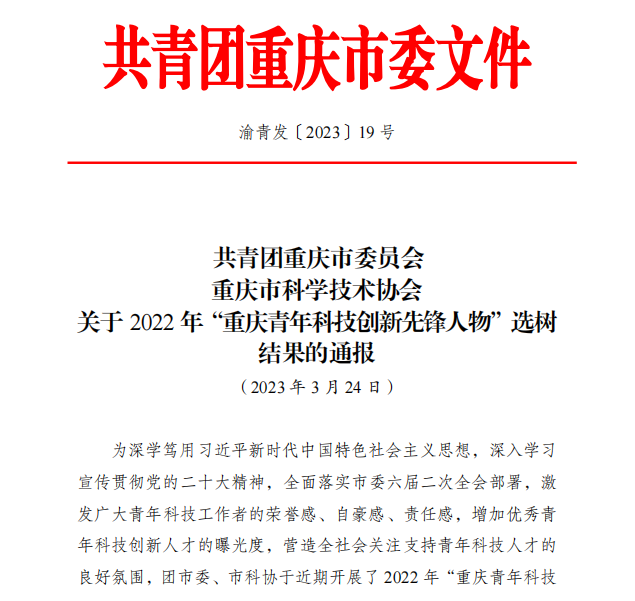5月30日是第七个全国科技工作者日。当天以“点亮精神火炬”为主题的2023年重庆市“全国科技工作者日”主题活动在重庆科技馆举行。活动现场公布了2023年重庆市“最美科技工作者”10人及提名奖获得者10人、首届“重庆市最美工程师”10人、2022年“重庆青年科技创新先锋人物”20人名单,并进行颁奖。365上市公司(英国)集团胡小方教授获评“2022重庆青年科技创新先锋人物”。