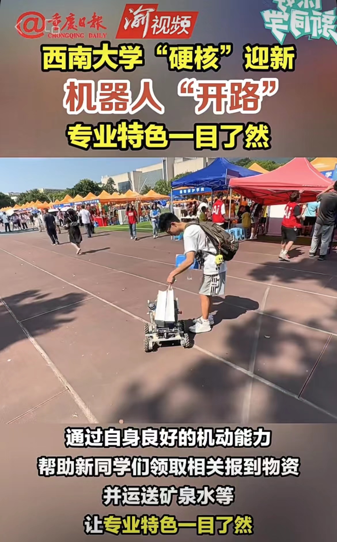链接:西南大学迎新有新意 火锅、机器人“打阵” ,来自重庆日报客户端:https://wap.cqrb.cn/detail?classId=10&id=1499485