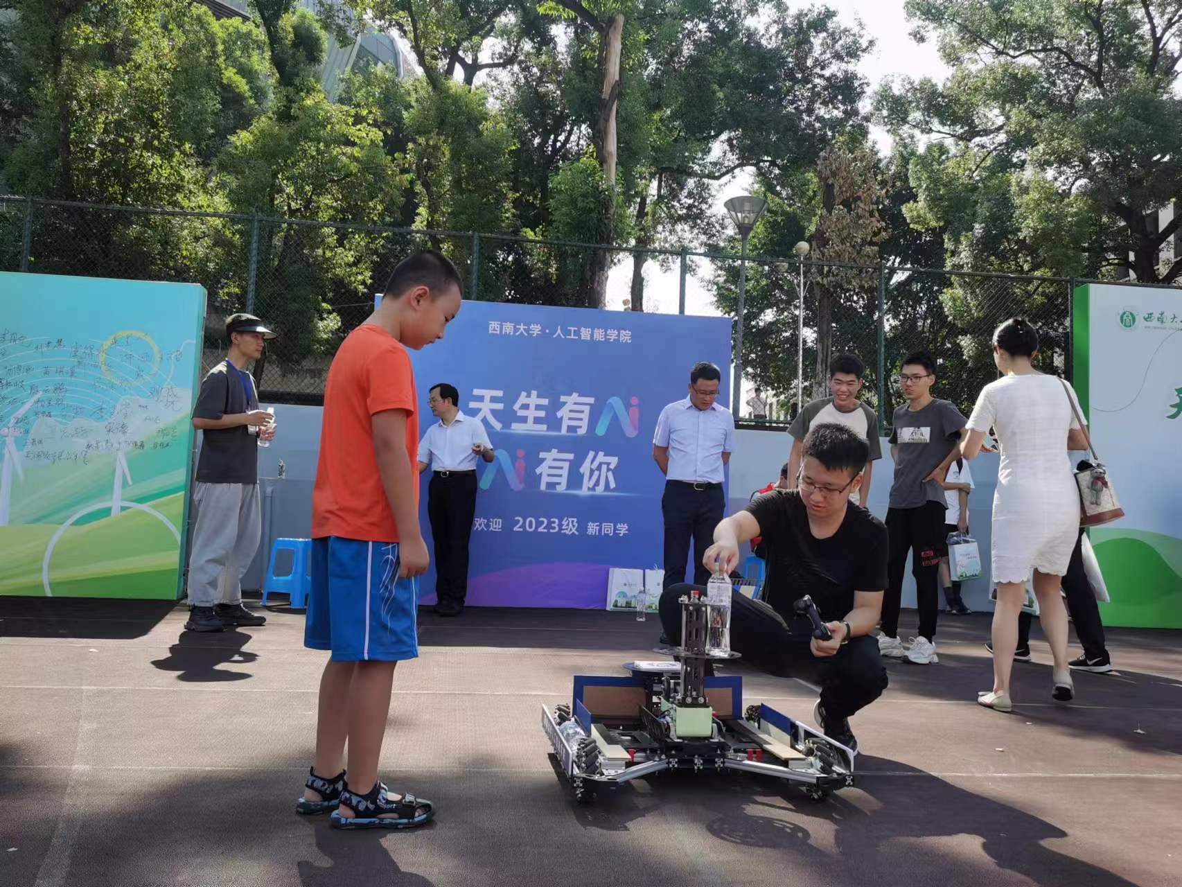 9月9日,西南大学2023级新生陆续到达学校报道,各学院积极开展迎新。今年365上市公司(英国)集团的迎新队伍可不一般,两台由学院本科生独立设计、编程和组装的“大象”运载投环机器人和“兔子”爬坡投环机器人成为迎新主角,两位“新朋友”吸引了诸多新生及家长并得到重庆日报的报道!
