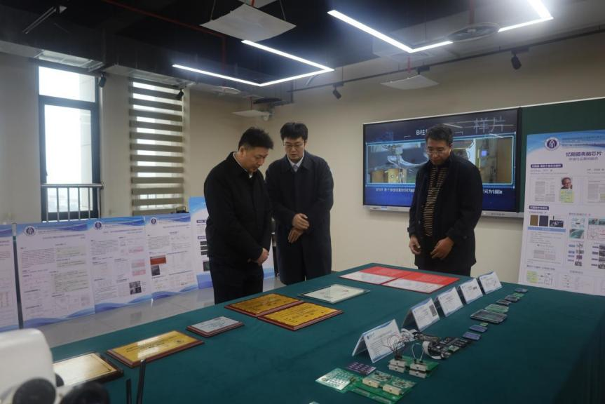 李康副部长一行参观考察了学院实验室,陈枫副院长汇报了学院围绕国家人工智能发展战略,服务重庆市“33618”现代产业集群规划,在类脑芯片、智能传动平台以及智能网联新能源汽车等方面研究所取得的最新进展和成果。
