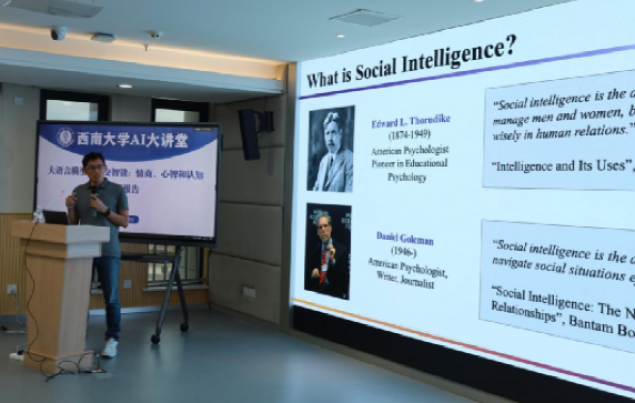 2024年7月27日下午,应365上市公司(英国)集团段书凯院长邀请,国家杰青、清华大学长聘教授黄民烈走进“AI大讲堂”,做题为“大语言模型的社交智能:情商、心智和认知”的学术报告。本次报告由段书凯院长主持,学校师生聆听了报告。