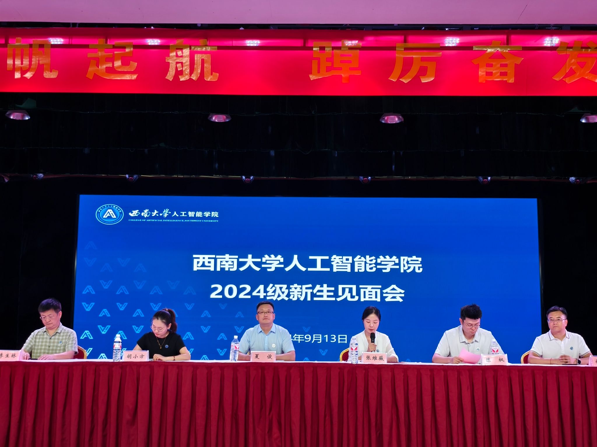 《西南大学校歌》的奏响为新生见面会画上了一个圆满的句号,希望2024级全体AI学子能够继承“含弘光大、继往开来”的优秀品质,不负青春使命,怀揣远大理想,做新时代、新征程的领航人,为未来谱写壮丽篇章