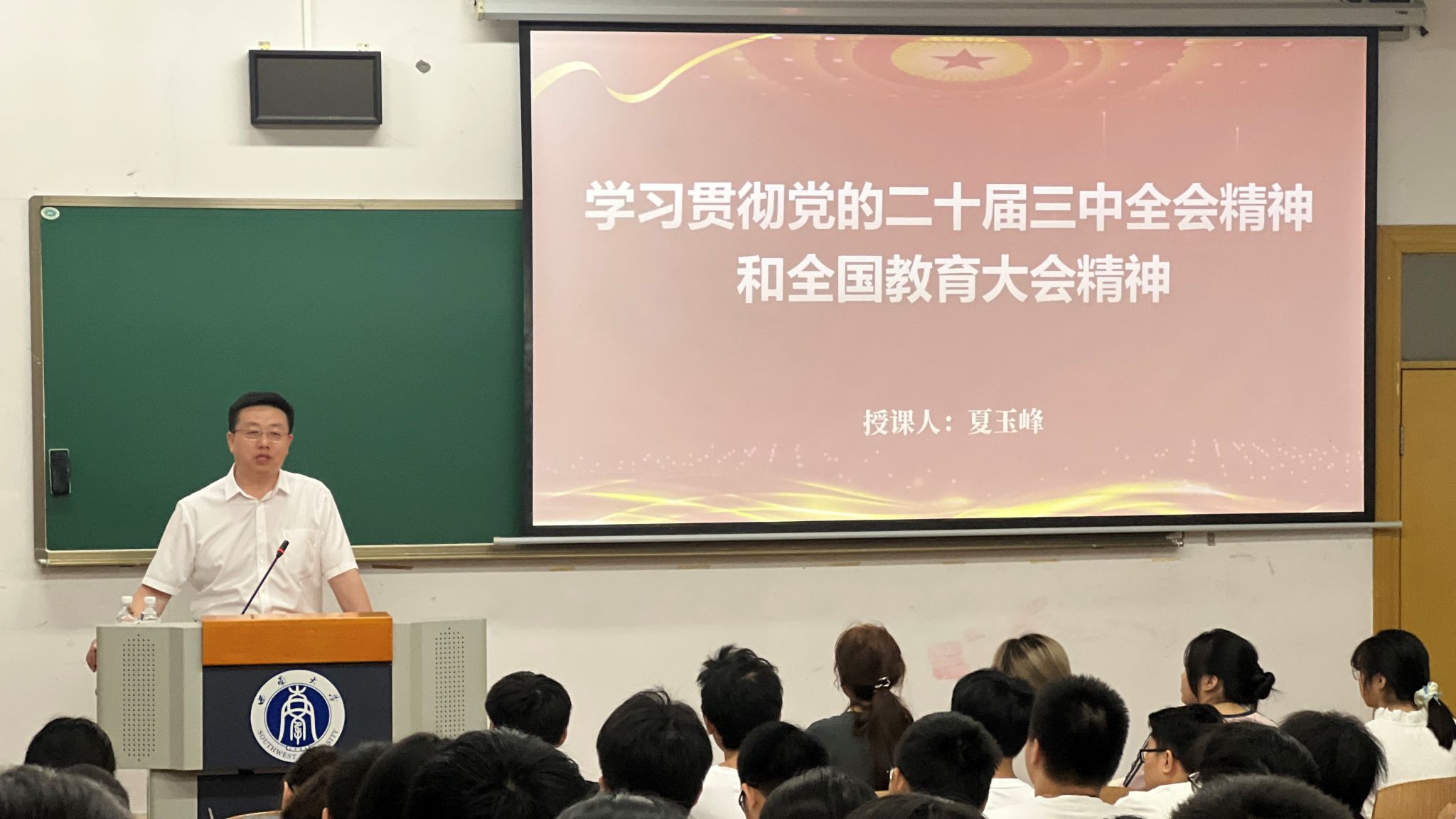 9月25日上午,学校党委副书记、纪委书记夏玉峰同志为学院2024级人工智能专业同学专题讲授形势政策课,授课内容为学习贯彻党的二十届三中全会精神和全国教育大会精神。