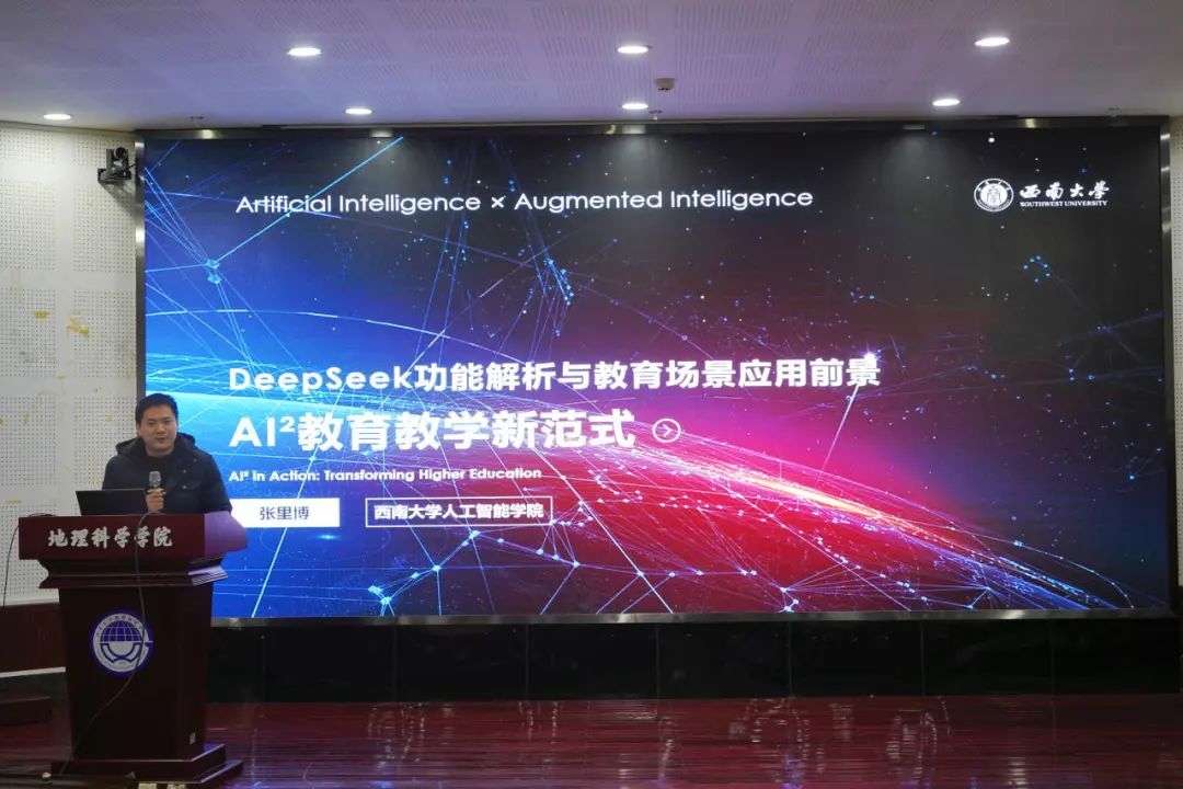 为贯彻落实教育部人工智能赋能教育行动方案,3月7日,学校举办“AI智能教学能力提升”专题培训会。本次培训以“AI教学新图景:智能技术重塑教育生态”为主题,学院智能科学系系主任张里博副教授受邀作题为《DeepSeek功能解析与教育场景应用前景:AI⟡教育教学新范式》的专题报告,吸引了千余名教师线上线下参与学习。活动由学校教师教学发展中心主任田晓伟主持。