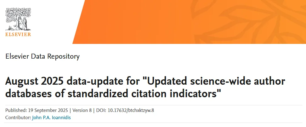 据了解,全球前2%顶尖科学家榜单分为“终身科学影响力排行榜(Career-long Impact)”和“年度科学影响力排行榜(Single-year Impact)”两大部分,从全球近700万名科学家中,通过基于其论文引用数、h因子、共同作者修正Hm因子、单独或第一作者的文章引用数等综合参数,遴选出世界排名前2%的科学家,涵盖22个领域和174个子领域。其中,“终身影响力”榜单统计科学家职业生涯期间的综合表现,“年度影响力”榜单则聚焦上一年度的学术影响力。