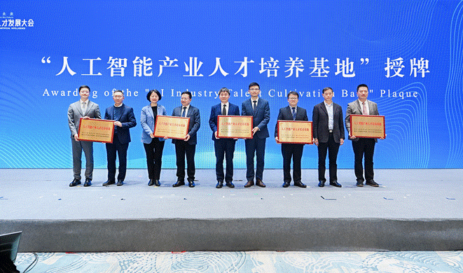 大会期间举行签约与揭牌仪式,重庆大学、西南大学、重庆邮电大学等五所高校被授予“人工智能产业人才培养基地”称号,嵇绍岭代表学校接受授牌。重庆市人力资源开发服务中心等四家单位被授予“人工智能产业人才实训基地”称号。“国际人工智能产业联盟中国西部中心”同期揭牌。